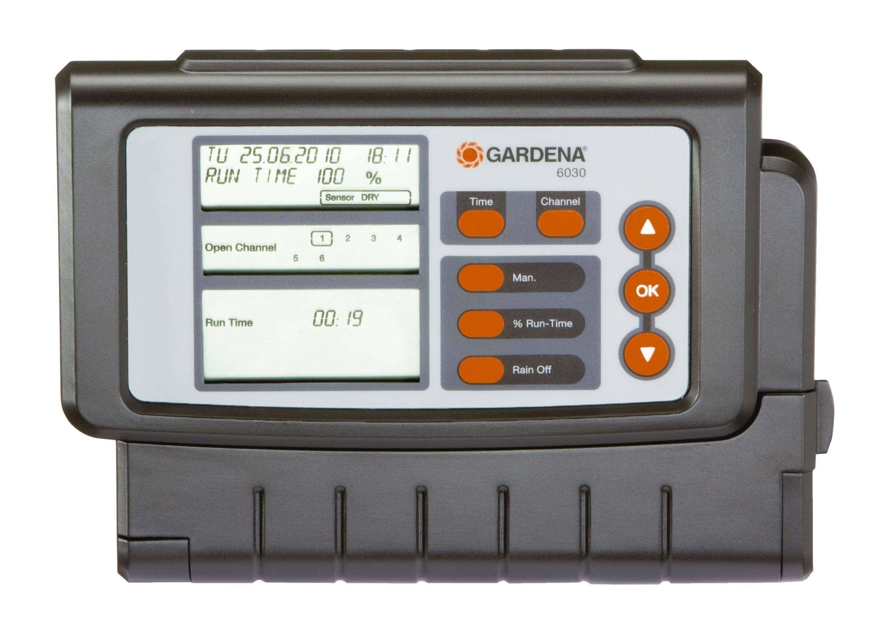 Controlul de irigare GARDENA Classic 6030 este soluția optimă pentru irigarea completă a grădinii dumneavoastră. Utilizați-l pentru a vă controla sistemul de irigare GARDENA pentru întreaga grădină fără efort – complet automat și economisind timp. Controlerul de irigare poate controla până la șase supape. Puteți seta trei programe pentru fiecare supapă și puteți furniza diferite zone de grădină în mod individual, în funcție de nevoile lor de apă. În combinație cu un senzor de umiditate a solului GARDENA disponibil opțional, este posibilă funcționarea de economisire a apei. Controlul irigarii este, de asemenea, compatibil cu supapele standard de 24 V. Un meniu intuitiv asigură o funcționare plăcută. Cu controlul de irigare Classic 6030 de la GARDENA, care poate fi instalat in interior sau pe un perete exterior protejat de ploaie, udarea cu udato este asigurata pentru tine. Suprafețele mari sunt irigate optim și diverse suprafețe sunt irigate individual. Cu controlul automat al irigarii de la GARDENA, nimic nu stă în calea irigarii automate pentru îngrijirea comodă a grădinii. Controlul irigațiilor. Gama completă cu funcții inovatoare pentru irigarea automată și economisitoare de apă a grădinii.